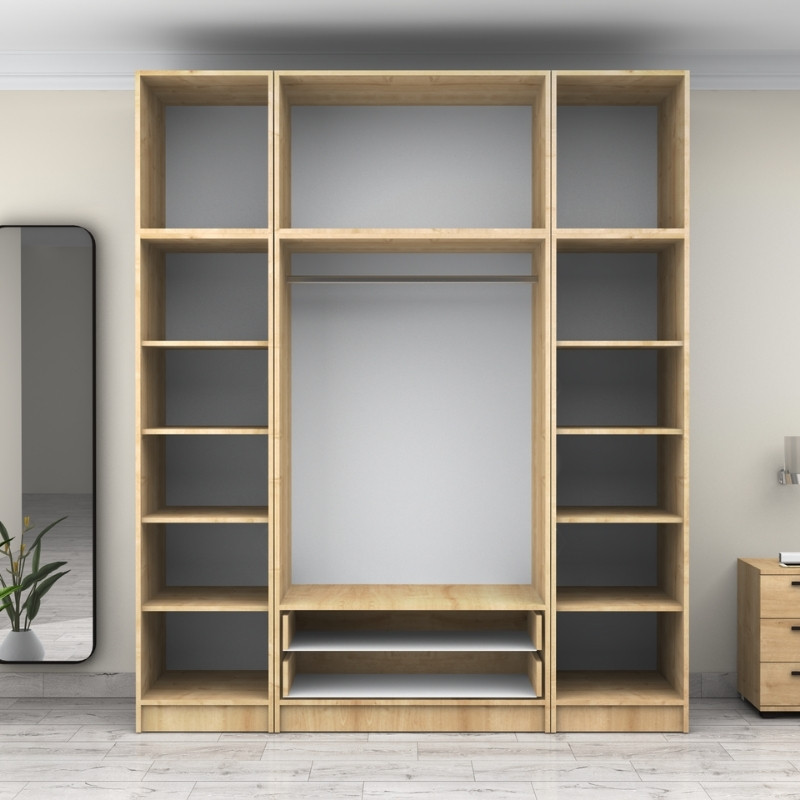 Ντουλάπα ρούχων Victoria Megapap τετράφυλλη με πατάρι και συρτάρια χρώμα φυσικό οξιάς 200x60x240εκ.
