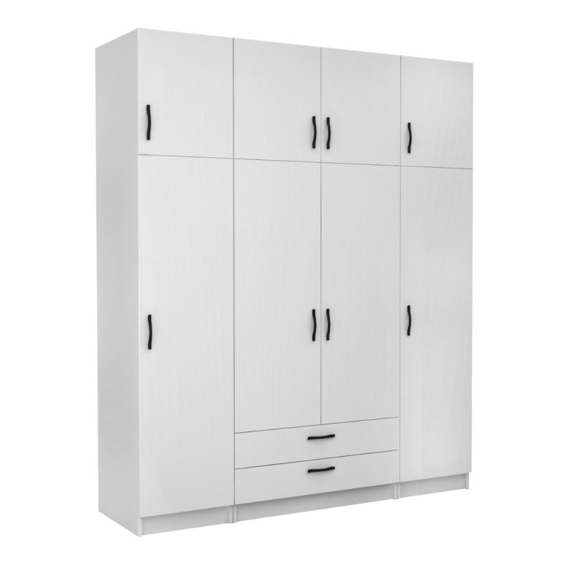 Ντουλάπα ρούχων Victoria Megapap τετράφυλλη με πατάρι και συρτάρια χρώμα λευκό 200x60x240εκ.