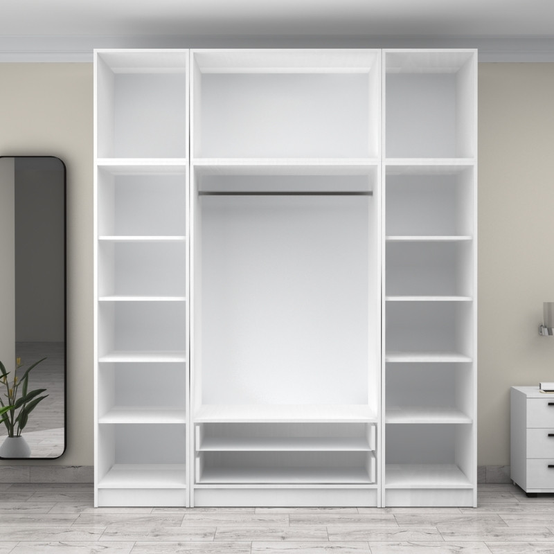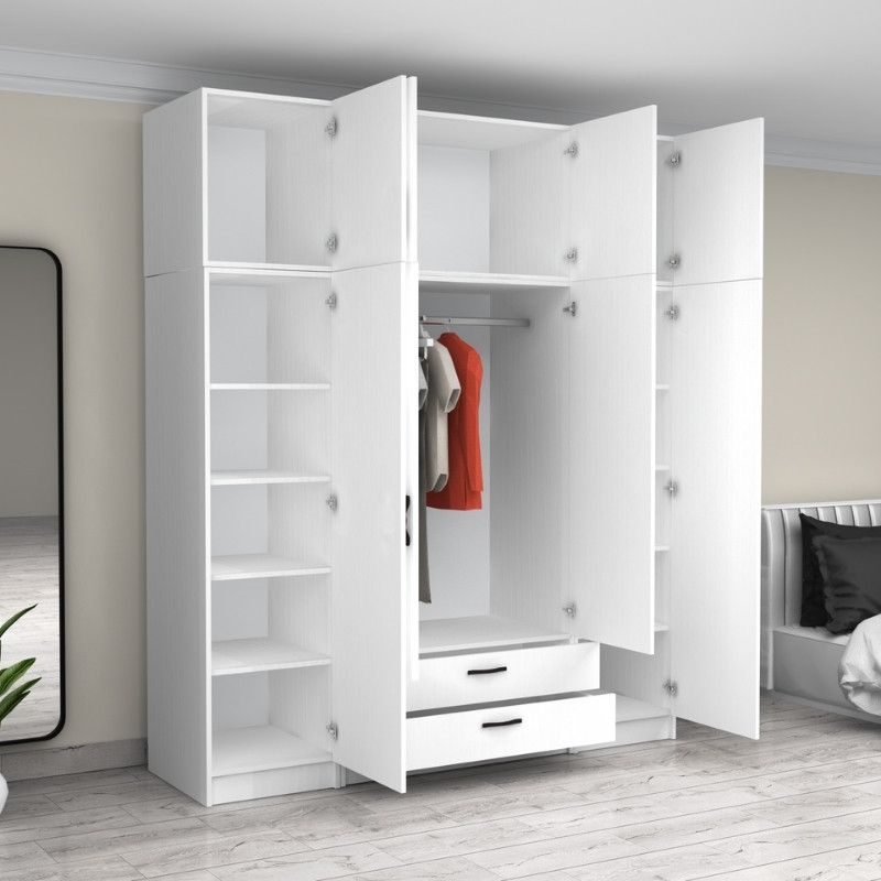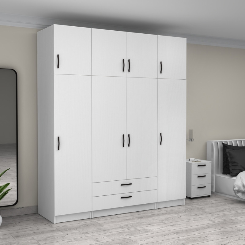 Ντουλάπα ρούχων Victoria Megapap τετράφυλλη με πατάρι και συρτάρια χρώμα λευκό 200x60x240εκ.