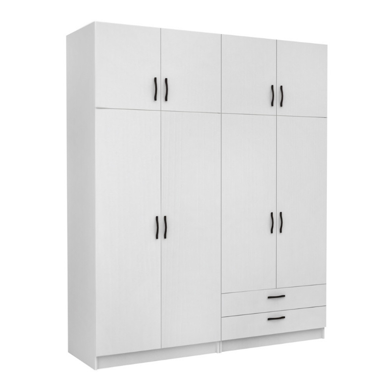 Ντουλάπα ρούχων Victoria Megapap τετράφυλλη με πατάρι και συρτάρια χρώμα λευκό 200x60x240εκ.