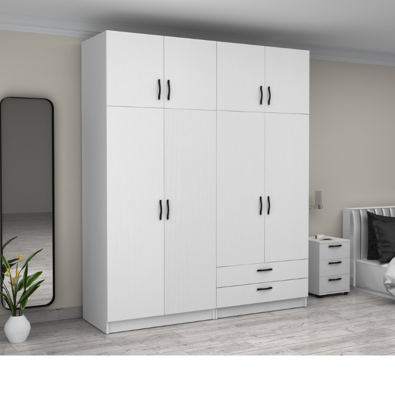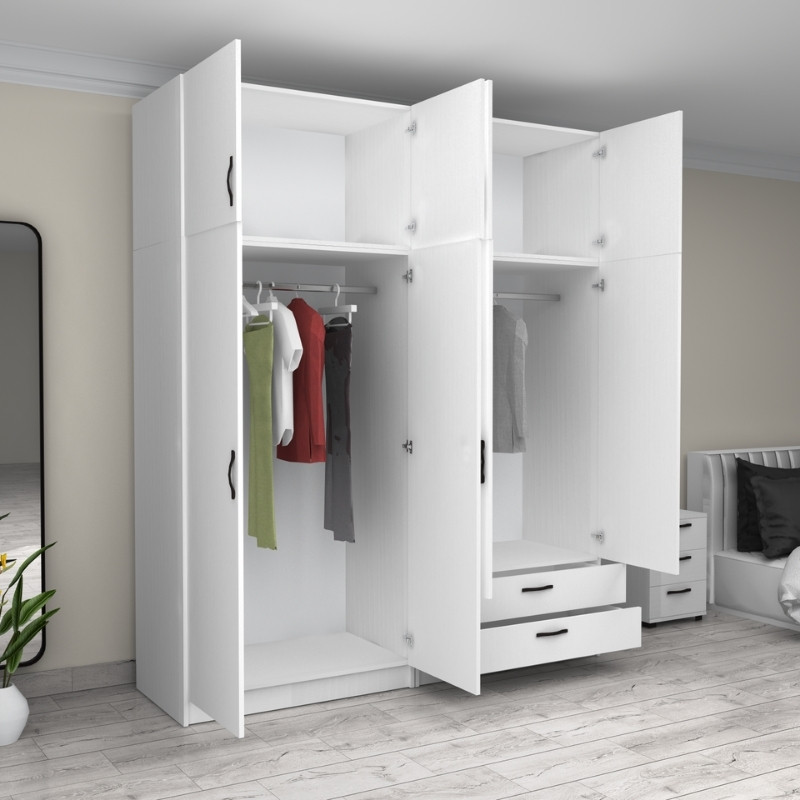 Ντουλάπα ρούχων Victoria Megapap τετράφυλλη με πατάρι και συρτάρια χρώμα λευκό 200x60x240εκ.