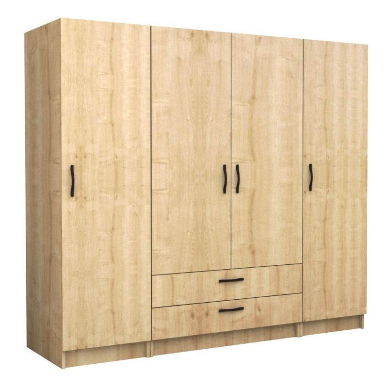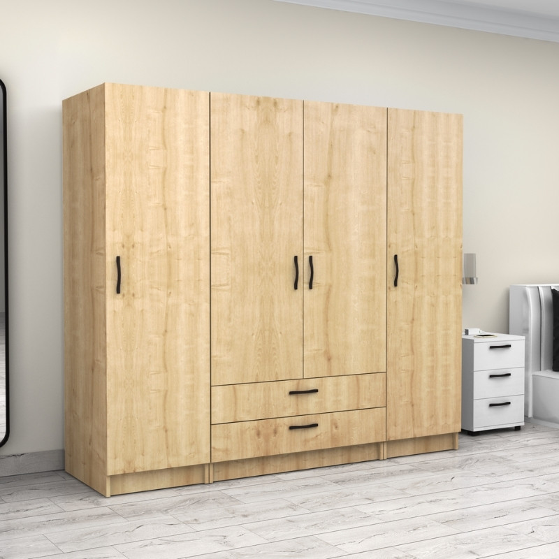 Ντουλάπα ρούχων Victoria Megapap τετράφυλλη με συρτάρια χρώμα φυσικό οξιάς 200x60x181εκ.