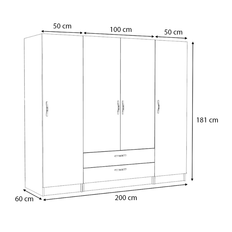 • Διαστάσεις ντουλάπας: Μήκος 100 x Βάθος 60 x Ύψος 181 εκ.