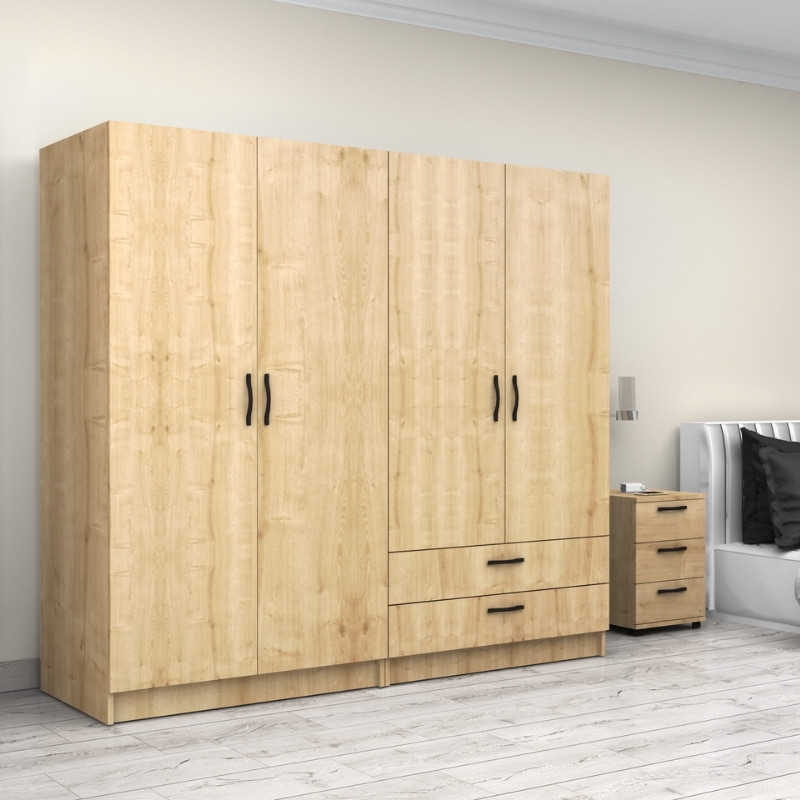 Ντουλάπα ρούχων Victoria Megapap τετράφυλλη με συρτάρια χρώμα φυσικό οξιάς 200x60x181εκ.
