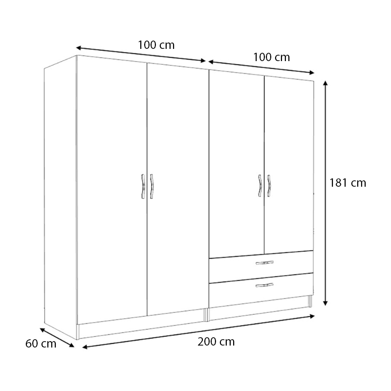 - Διαστάσεις ντουλάπας: Μήκος 200 x Βάθος 60 x Ύψος 181 εκ.