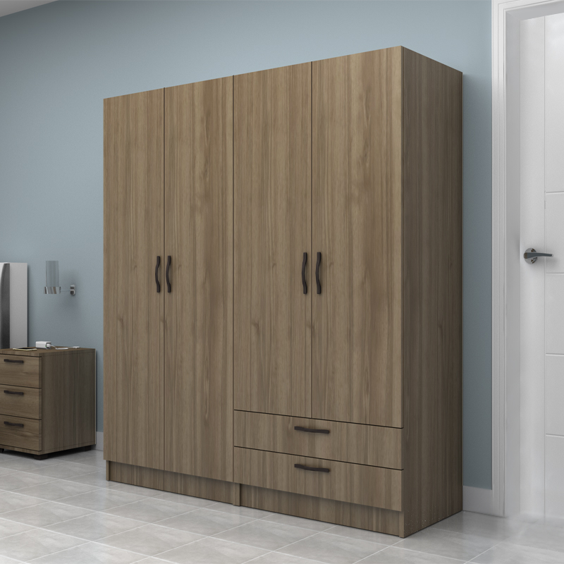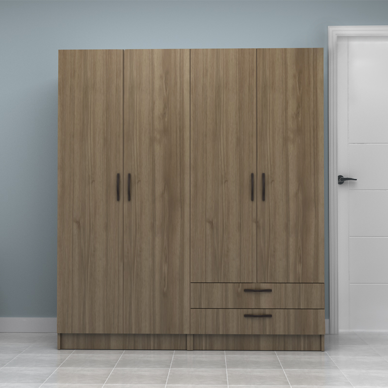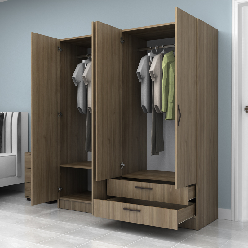 Ντουλάπα ρούχων Vivian Megapap τετράφυλλη με συρτάρια χρώμα καρυδί 160×51.8×181εκ.