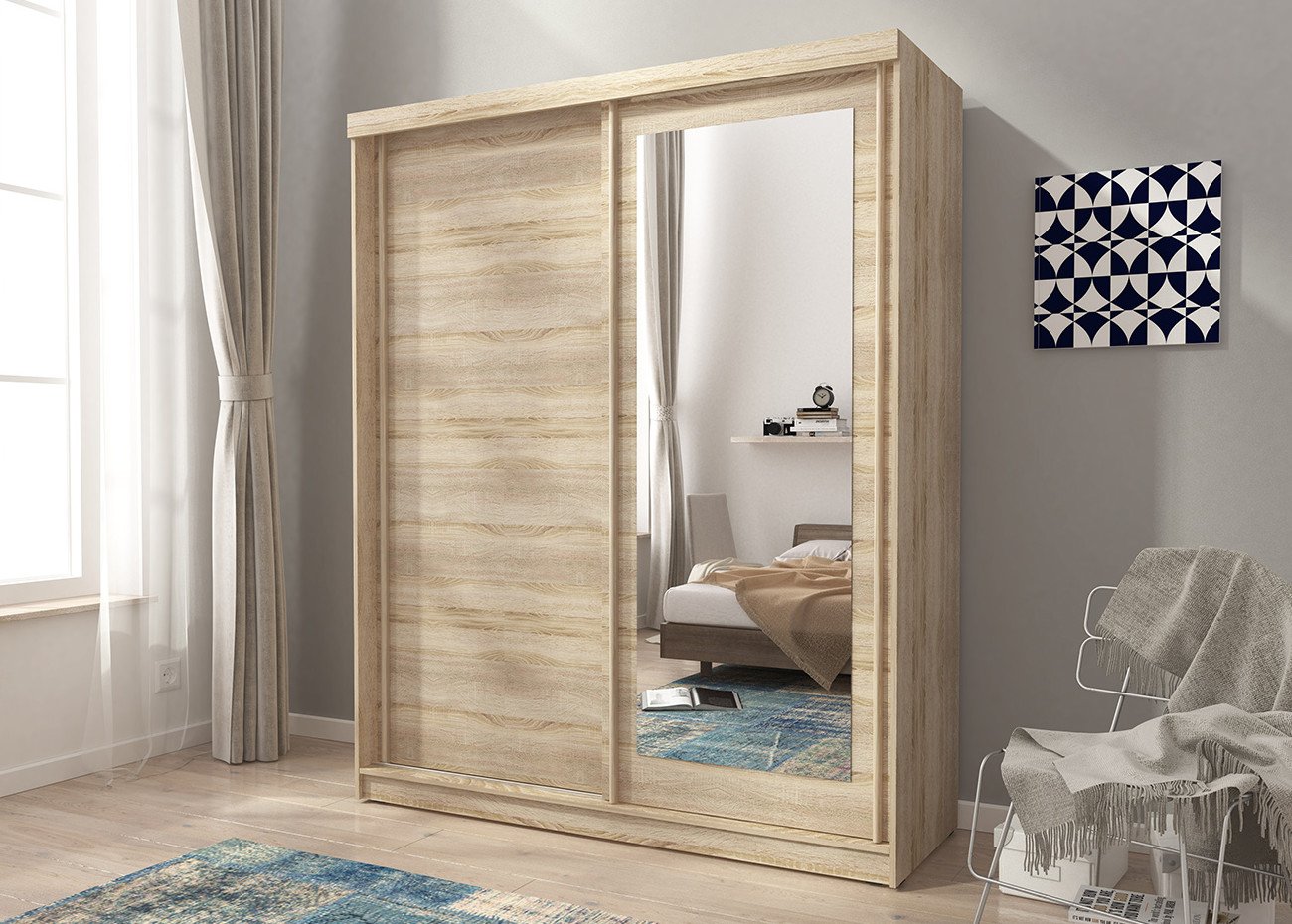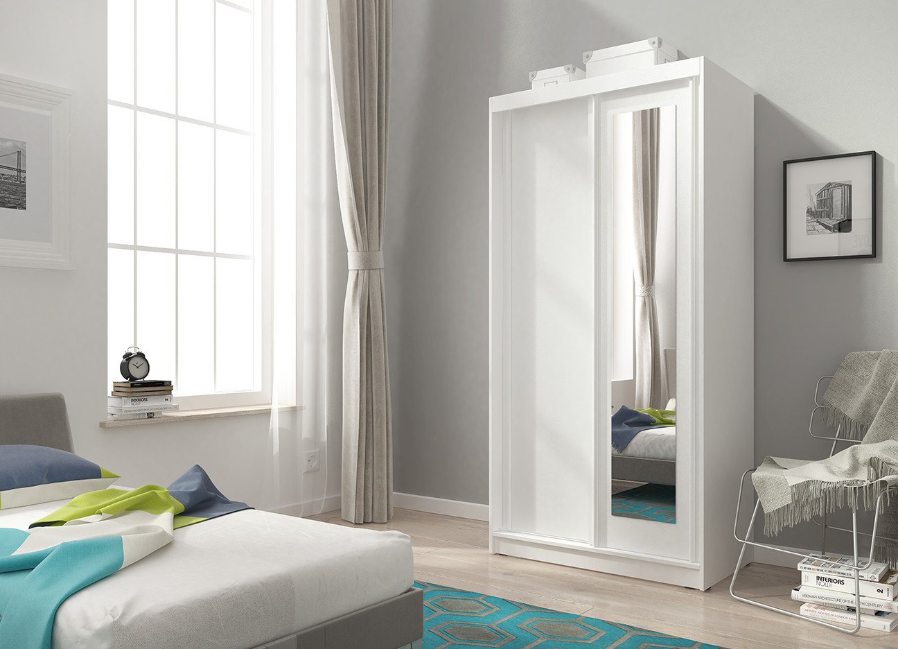 Ντουλάπα Bellamy συρόμενη, με μεγάλο ολόσωμο καθρέπτη στη δεξιά πλευρά, διαθέσιμη σε 4 συνδυασμούς χρωμάτων και 3 διαστάσεις, ώστε να επιλέξετε αυτή που θα ταιριάζει απόλυτα στο χώρο σας. Ο κομψός και πρακτικός σχεδιασμός της θα σας εντυπωσιάσει.