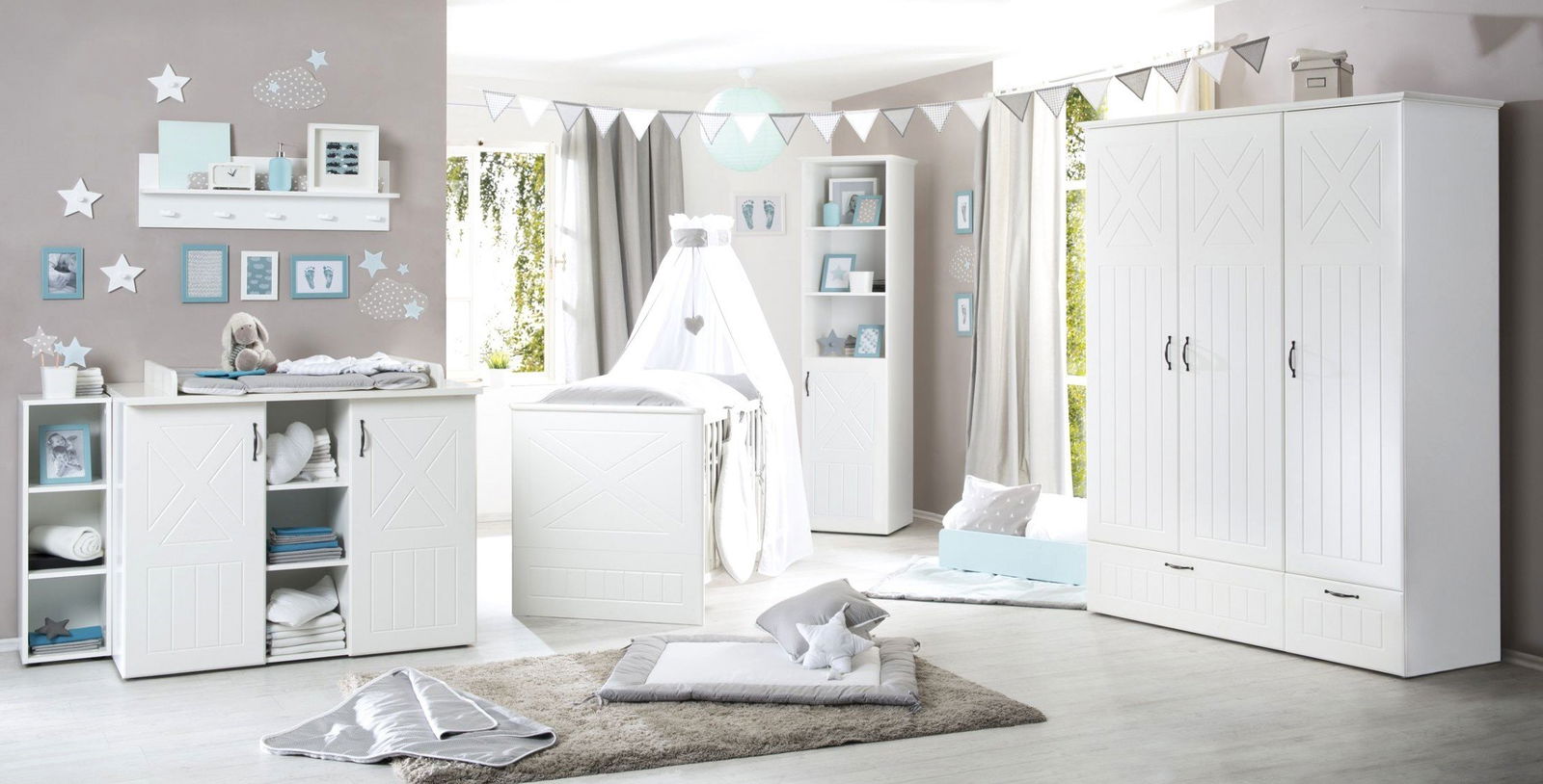 Τρίφυλλη ντουλάπα Mediena, χρώματος λευκού, με όμορφη διακόσμηση στις προσόψεις. Διαθέτει ευρύχωρο εσωτερικό και μπορεί να καλύψει τις ανάγκες για αποθηκευτικό χώρο και σε μεγαλύτερες ηλικίες.