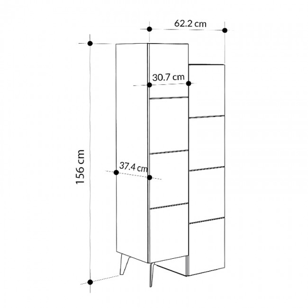 • Διαστάσεις: Μήκος 62,2 x Βάθος 37,4 x Ύψος 156 εκ.