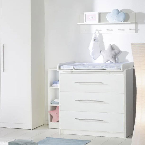 Ραφιέρα Meredith σε λευκό χρώμα, ιδανική για να τη χρησιμοποιήσετε πίσω από την αλλαξιέρα της ίδιας σειράς για πρόσθετο αποθηκευτικό χώρο ή στο πλάι του κρεβατιού ως μικρή βιβλιοθήκη για τα πρώτα παραμύθια του μωρού