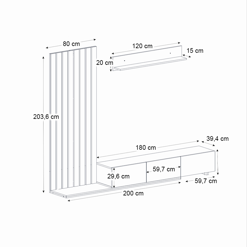 - Διάσταση επίπλου τηλεόρασης: Μήκος 180 x Βάθος 39,4 x Ύψος 33,7 εκ.