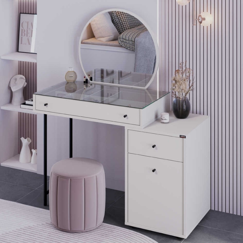 Τουαλέτα με καθρέπτη Dior Megapap χρώμα λευκό του πάγου 108x45x130εκ.