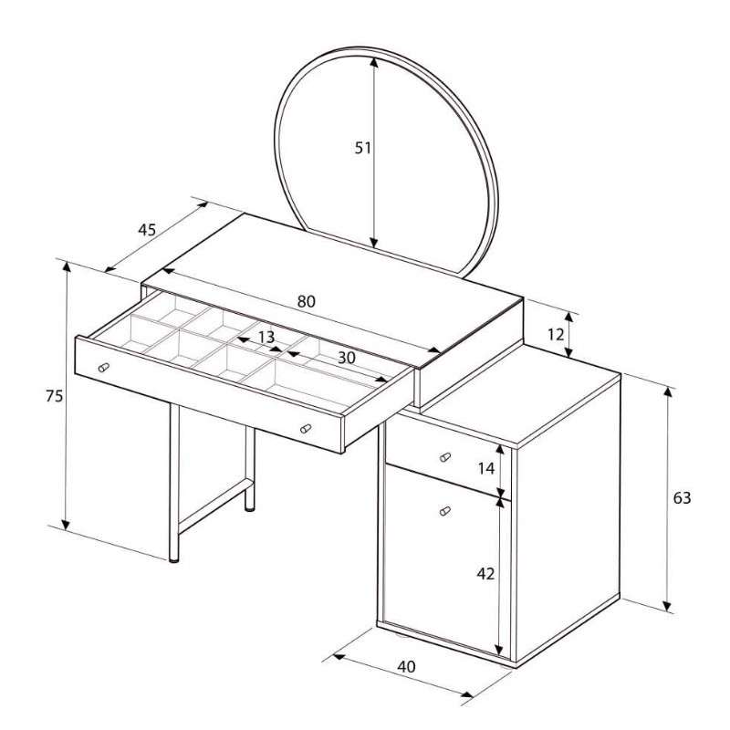 • Διαθέτει μια γυάλινη επιφάνεια και από κάτω ένα συρόμενο συρτάρι με 8 θήκες αποθήκευσης.
