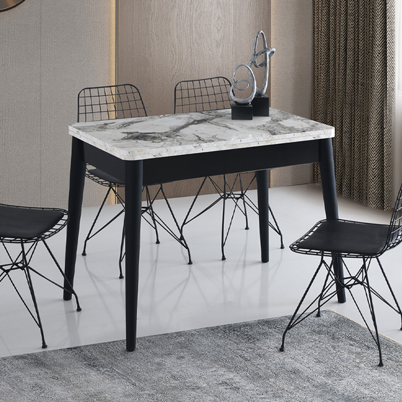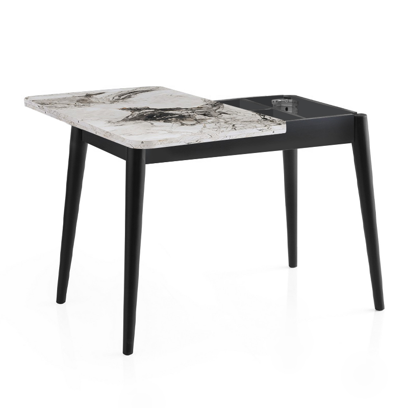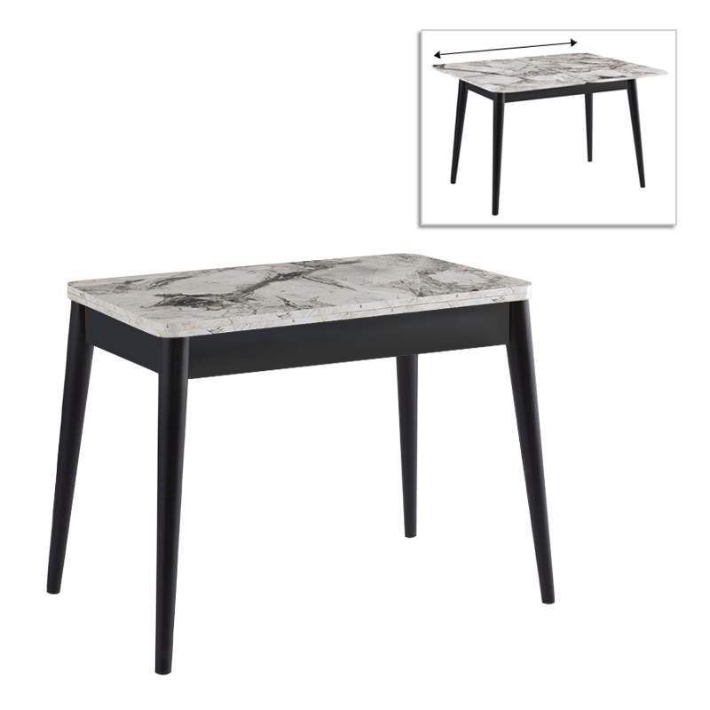 Τραπέζι Dolunay Megapap επεκτεινόμενο χρώμα λευκό εφέ μαρμάρου – μαύρο 100×60(120×100)x79,5εκ.
