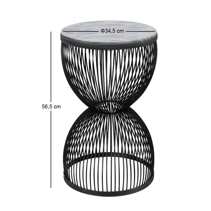 Τραπεζάκι βοηθητικό Stella Megapap μεταλλικό – Mdf χρώμα μαύρο – λευκό εφέ μαρμάρου Ø34,5×56,5εκ.