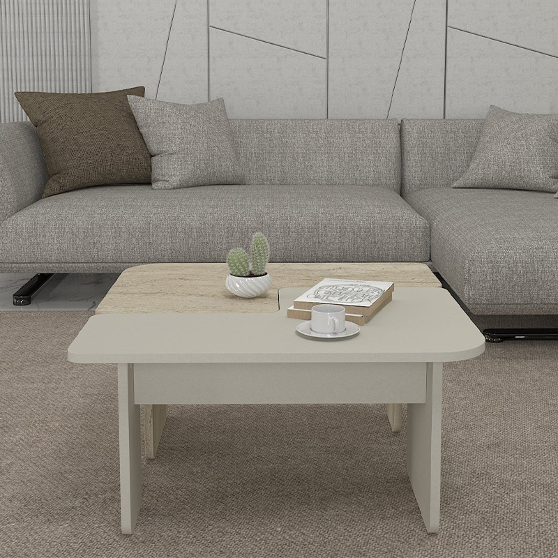 Τραπεζάκι σαλονιού σετ 2τμχ Sevilla Megapap χρώμα sandstone – travertine 75x75x37,4εκ.