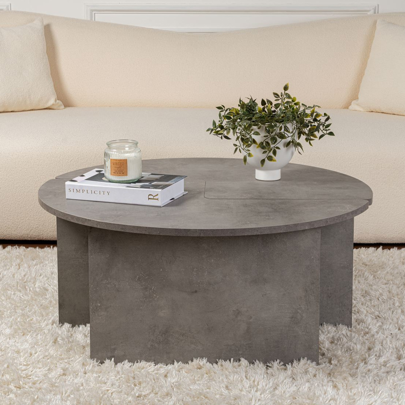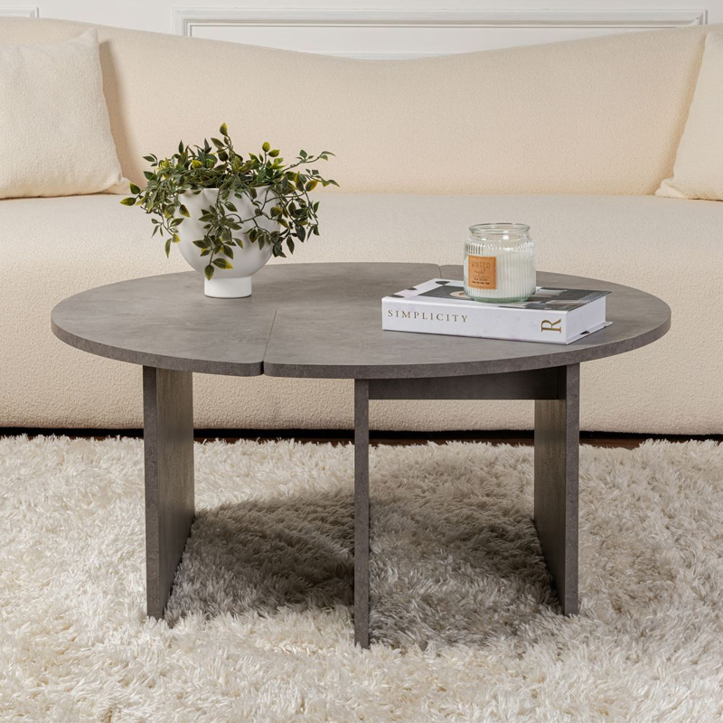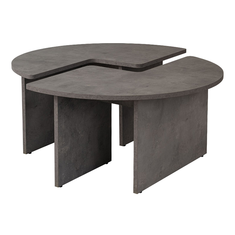 Τραπεζάκι σαλονιού σετ 2 τμχ Moira Megapap χρώμα γκρι σκυροδέματος Ø90×41εκ.