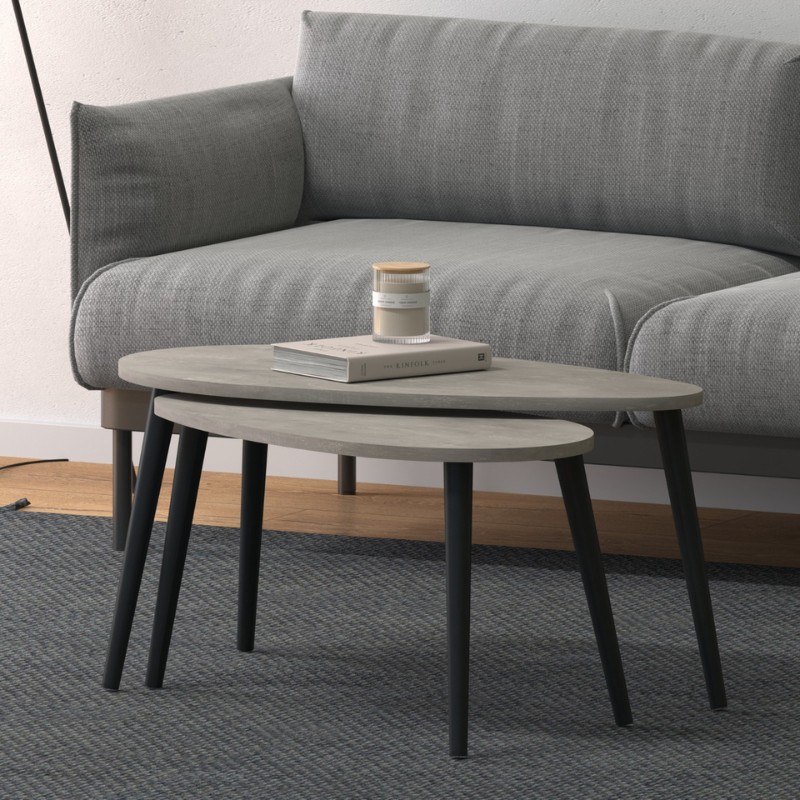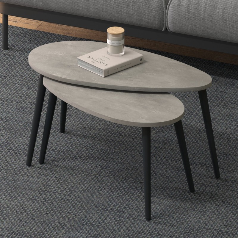 Τραπεζάκι σαλονιού σετ 2 τμχ Spline Megapap χρώμα γκρι ρετρό 80x40x46εκ.