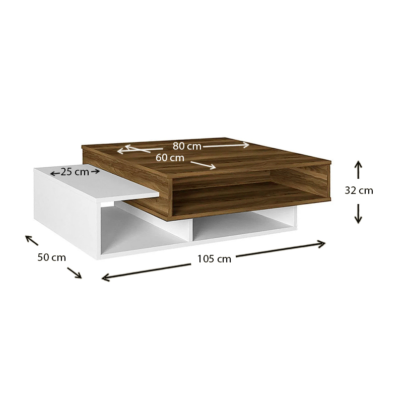 Τραπεζάκι σαλονιού Tab Megapap από μελαμίνη χρώμα λευκό – καρυδί 105x60x32εκ.