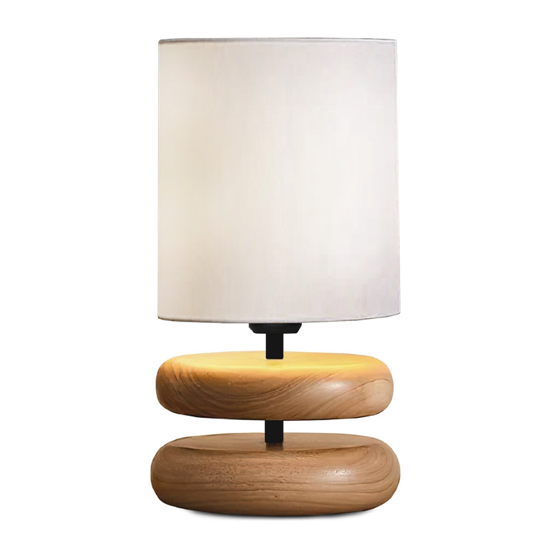 Φωτιστικό επιτραπέζιο Lucia Megapap E14 ξύλινο – ύφασμα Pvc χρώμα φυσικό – κρεμ Ø15×35εκ.