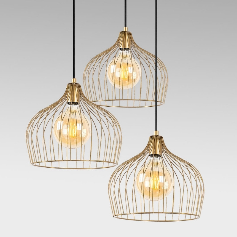 Φωτιστικό οροφής Alvaro Megapap E27 μεταλλικό τρίφωτο χρώμα χρυσό 56x40x121εκ.