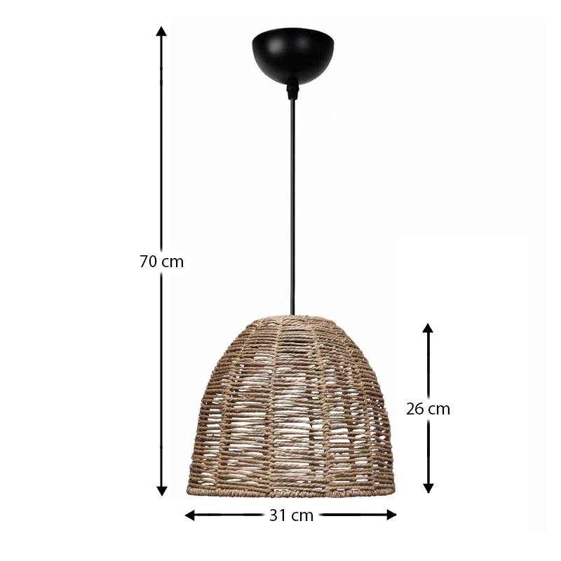 Φωτιστικό οροφής Cascais Megapap E27 από σχοινί μονόφωτο χρώμα φυσικό Ø31×70εκ.